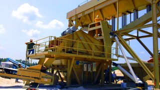 Our customer started out making a concrete sand and a fine cut of frac sand a then running it across a dewatering a screen that multi-purpose. A they wanted the driest product possible before it hit the ground and they wanted to cut some off the bottom end of the sand and that was done with a cyclone. The concrete sand was made in the traditional way of blending the stations back in to a sand screw and stockpiling with radial stackers.